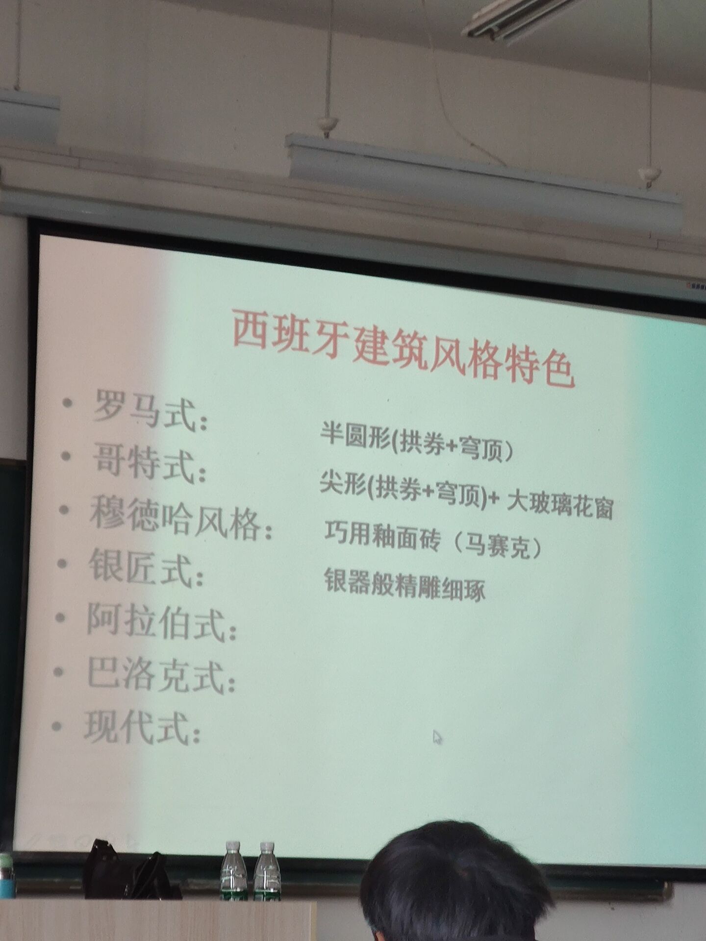 本次讲座主要分为两个环节。在第一环节,徐玲教授凭着自己在西班牙的旅游见闻以及丰富的专业知识,给同学分析了西班牙建筑特点,徐玲教授将西班牙建筑风格分为七大类型进行详细解说,让同学们感受到每一种建筑都有其独特的风格与韵味。第二环节是师生互动环节,同学们十分踊跃的向徐玲教授提出问题,并得到教授的精彩解答。