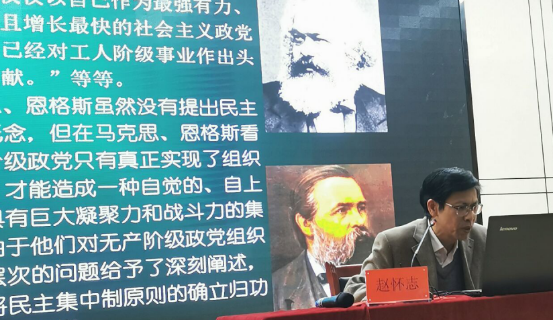 本次党课的主题是:“党的组织、党的纪律和党的作风”。赵怀志老师首先说明党的组织原则,指出民主集中制原则是中国共产党的根本组织原则,也是群众路线在党的生活中的运用。民主集中制是民主基础上的集中和集中指导下的民主。然后介绍了民主集中制的形成,民主集中制在党的成长过程中的作用和重要性以及民主集中制制度建设与现代化的关系。