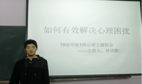 为进一步引导大家关注大学生心理健康问题,11月18号晚,19级建筑环境与能源应用工程专业开展了“改善心理困扰”主题班会。本次班会的参加人员有19级建筑环境与能源应用工程专业全体同学,心理委员林洪鹏作主持及讲解。