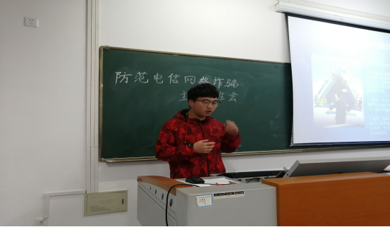 最后,环能一班班长李恒向我们详细介绍了电信网络诈骗的几种常见手段:冒充公检法查案诈骗、“猜猜我是谁”诈骗、QQ冒充好友诈骗、网络购物诈骗、退款诈骗……提高警惕性是防电信网络诈骗的有效手段。各类单据,旧手机,身份证复印件,社交媒体都有可能泄露个人信息。