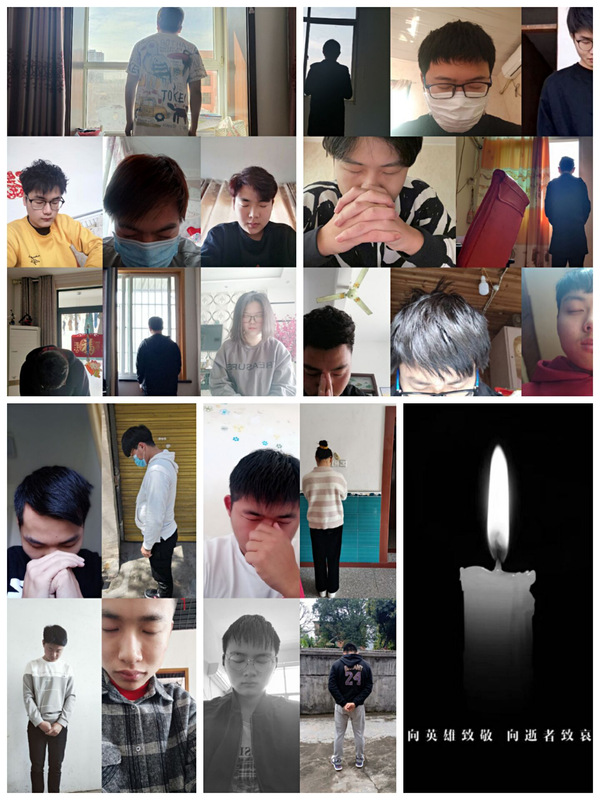 4月4日10时由学生会成员在土木工程系学生会QQ群组织线上哀悼,全体成员默哀三分钟,并且小木公众号,微博,抖音同时推送默哀文案且官方平台系标4月4日均调换成黑白色,以表达深切悼念之情来致敬英雄。