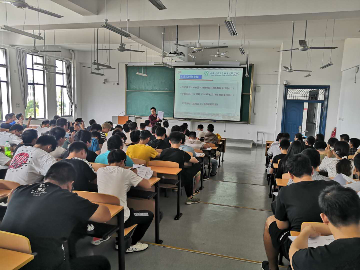924日下午,2017级土木工程专业毕业实习动员大会在南教308召开。参加本次动员大会的有土木工程系主任邵艳教授,土木工程系教学主任助理周海玲老师,土木工程系行政主任助理吴研老师,以及土木与道桥教研室相关教师、2017级土木工程专业全体学生。
