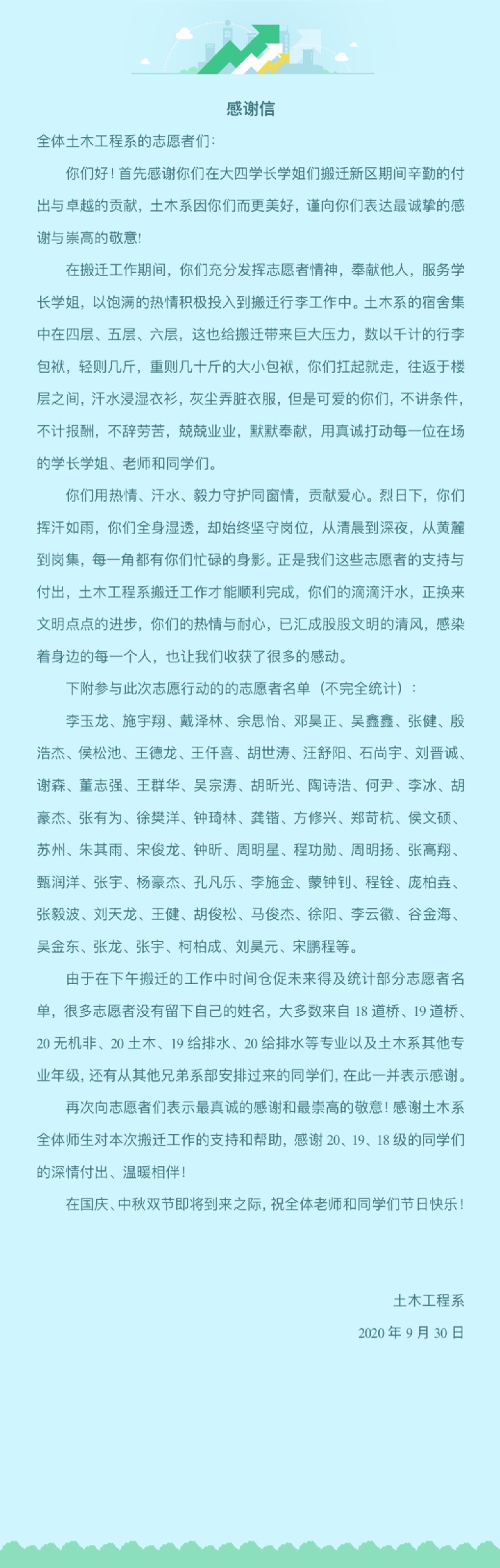 【党团活动】致土木工程系全体搬迁工作志愿者的一封感谢信