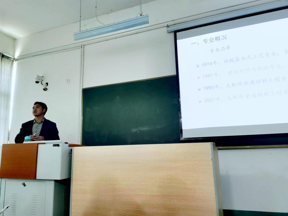 吴修胜教授从无机非专业介绍、培养方案、专业学习内涵、核心课程、专业发展前景等方面给学生进行了全方位介绍。吴教授就我校的培养方案进行讲解,结合专业核心课程给学生进行展示,使学生明确了自己的学习任务,学习目标。通过吴教授的讲解,同学们了解到国家各个领域对无机非专业的需求,对本专业的就业前景有了更加清晰的认识。