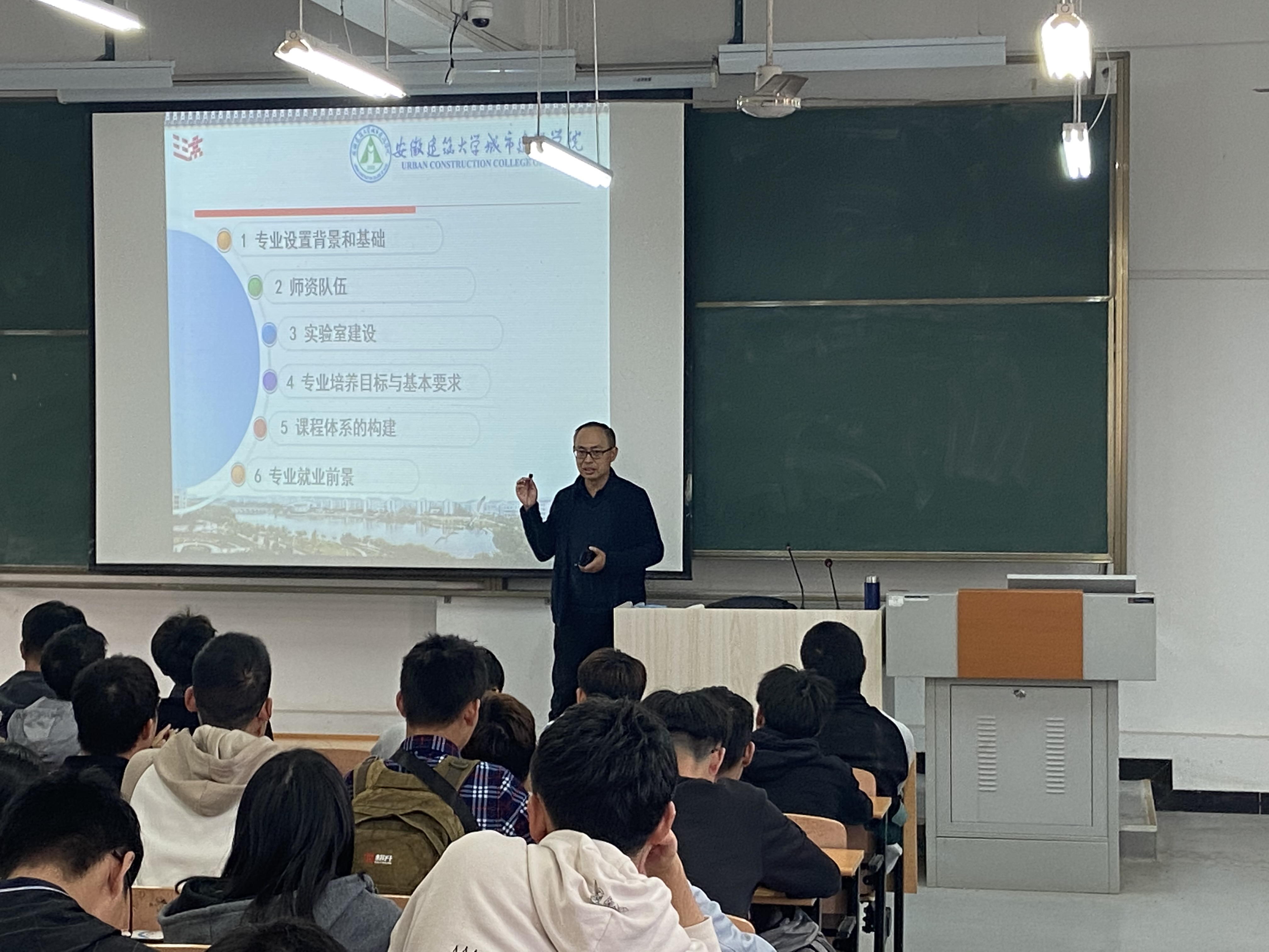 王仕传老师介绍了土木工程的专业内涵、培养目标、本科生能力要求等,使同学们更加深入的了解土木工程专业是什么、能够干什么。在讲座过程中,王老师结合工程实例,深入浅出的讲解土木工程专业对社会经济建设的积极作用,培养学生对所学专业的兴趣。