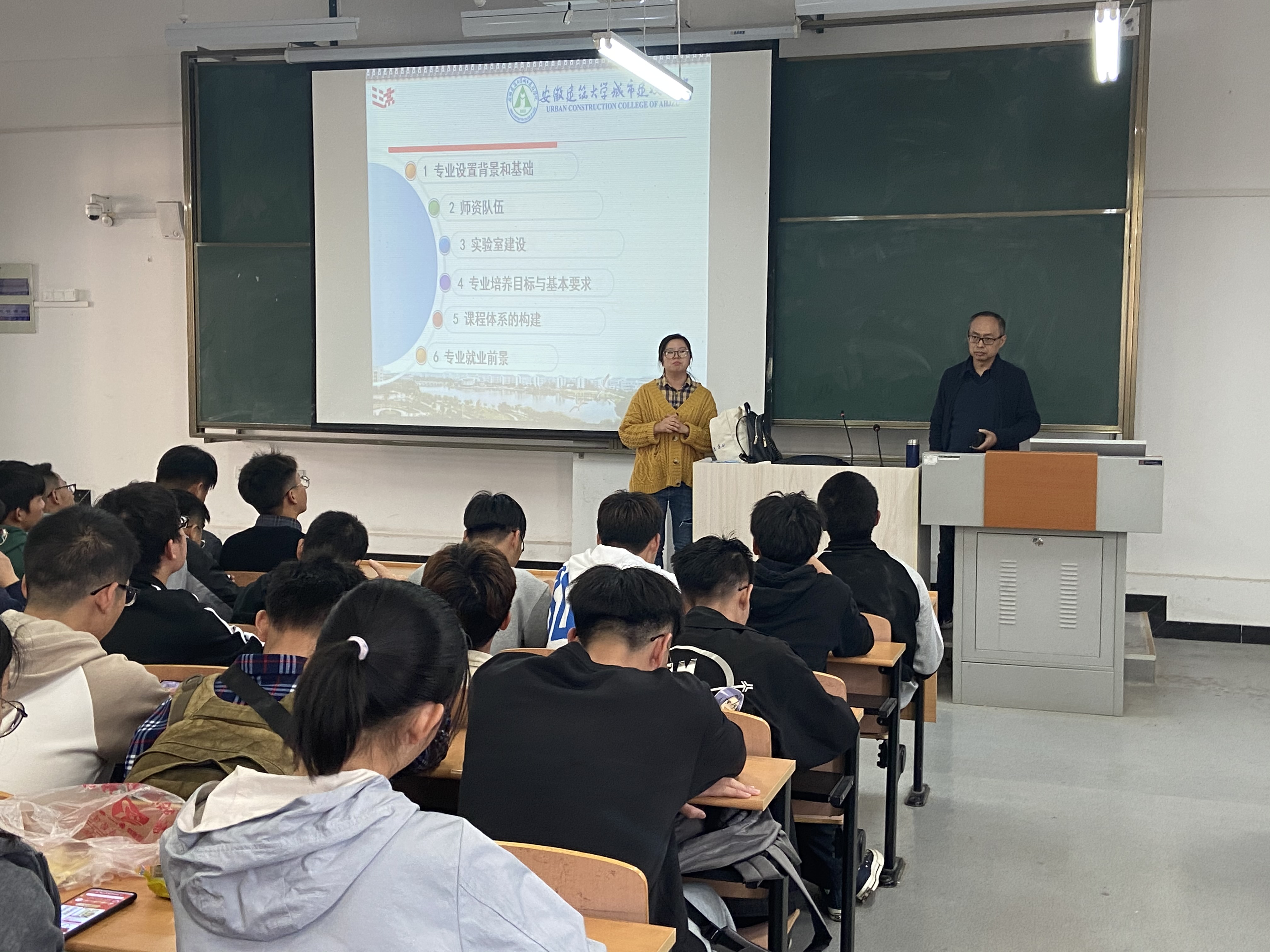 为了让土木工程专业20级新生更好的了解本专业的发展历史、课程体系、就业前景,做好大学四年的学业规划,11月10日下午四点,土木工程系土木教研室在南教105举行了2020级土木工程专业新生的入学教育讲座,本次讲座由来自安徽建筑大学土木工程学院的王仕传副教授担任主讲,土木教研室李云凤老师主持讲座。