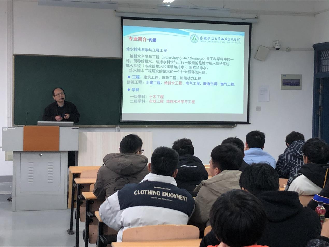 为了让2020级给排水科学与工程专业新生尽快适应新的学习、生活环境,12月3日下午14:30,给排水教研室在南教202开展新生入学教育讲座,由安徽建筑大学张红亚教授主讲,给排水教研室副主任任高翔老师主持,给排水教研室教师和20级给排水专业全体同学参加了此次讲座。