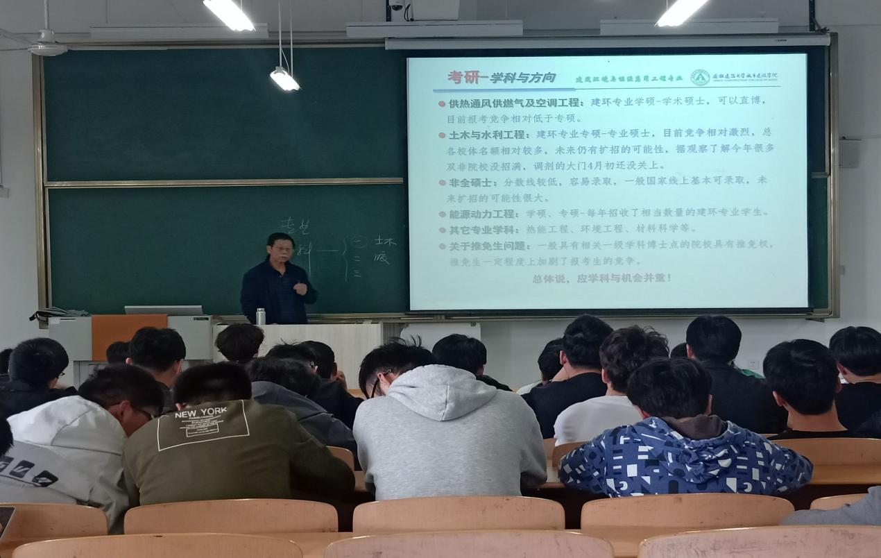 2021年4月29日,星空在线注册(中国)官方网站-注册登录土木工程系邀请安徽省土木学会理事、安徽省暖通空调学会副主委、安徽制冷学会理事、徽商建筑环境与节能专业委员会副主委和安徽建筑大学副教授王晏平老师,给建筑环境与能源应用工程专业开展“就业与考研”主题讲座。2018级环能专业的同学以及环能教研室老师相聚于南教208,共同参与了本次讲座。