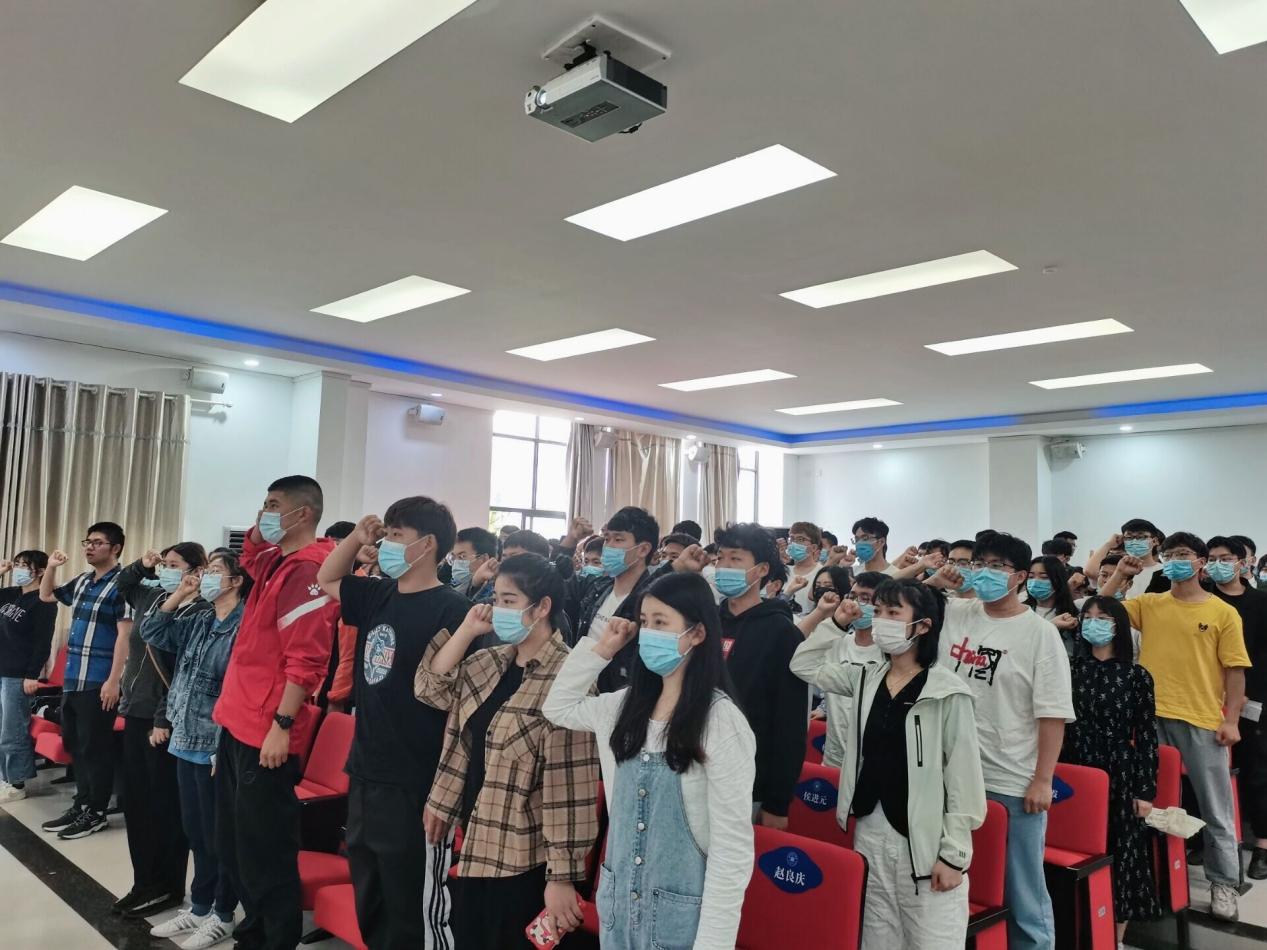 大会结束之际,学生党支部书记徐亚兰老师带领全体党员进行入党宣誓,并向全体预备党员表示祝贺,提出希望:成为一名党员是一种荣誉,更是一种责任,希望同学们在以后的生活学习中以严纪律、高标准规范自己的言行,以身作则,发挥好模范带头作用。
