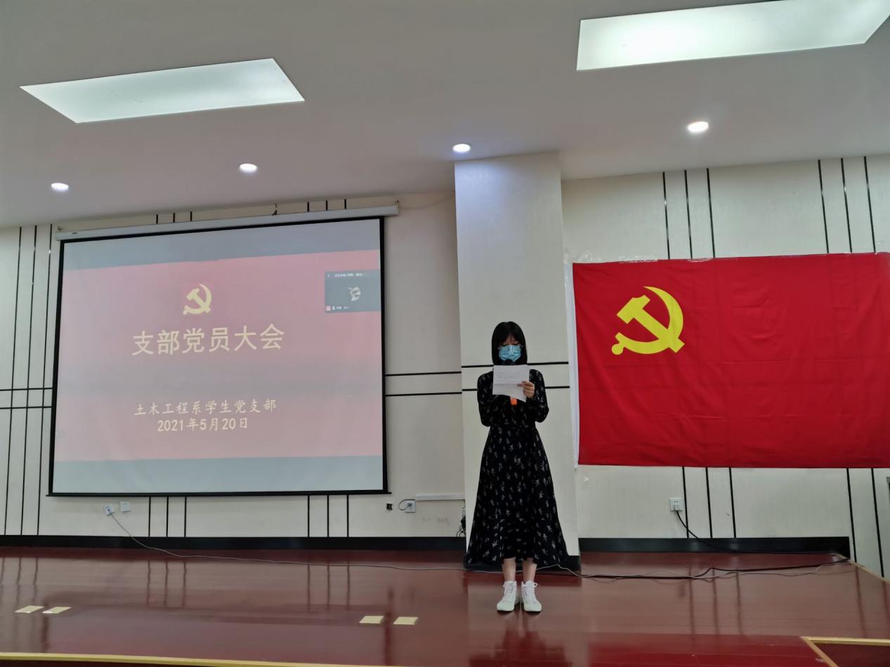 本次大会由土木工程系学生党支部书记徐亚兰老师主持,参加此次大会的有土木工程系学生党支部宣传委员吴雅婷,组织委员兼纪检委员陈苏雨,辅导员琚慧、朱雅慧、胡泽春等支部正式党员、以及支部全体预备党员。