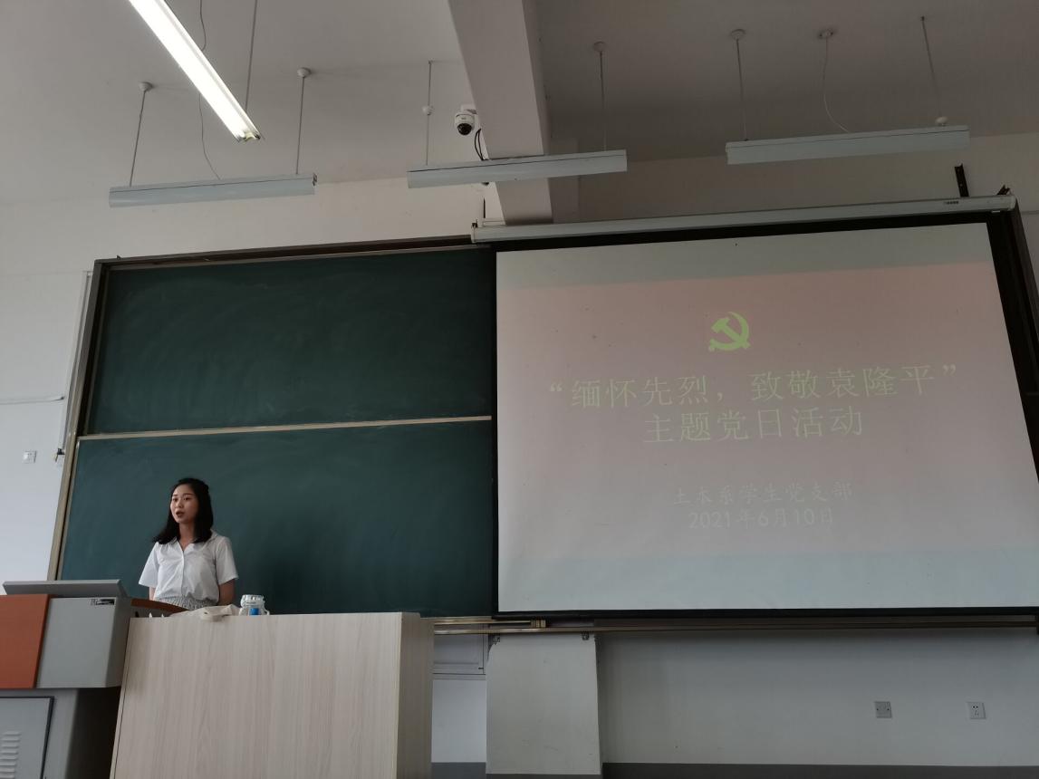 6月10日下午2点30分,土木工程系学生党支部开展了“缅怀国士、致敬袁隆平”“观影活动,支部书记徐亚兰带领全体党员在南教208观看纪录片《袁隆平》。