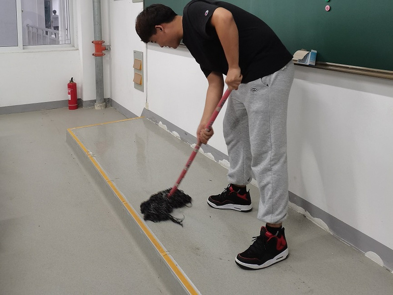 经过两个小时的打扫,实验室、楼道、楼梯的面貌焕然一新,为同学们提供一个更加整洁、舒适的学习环境。