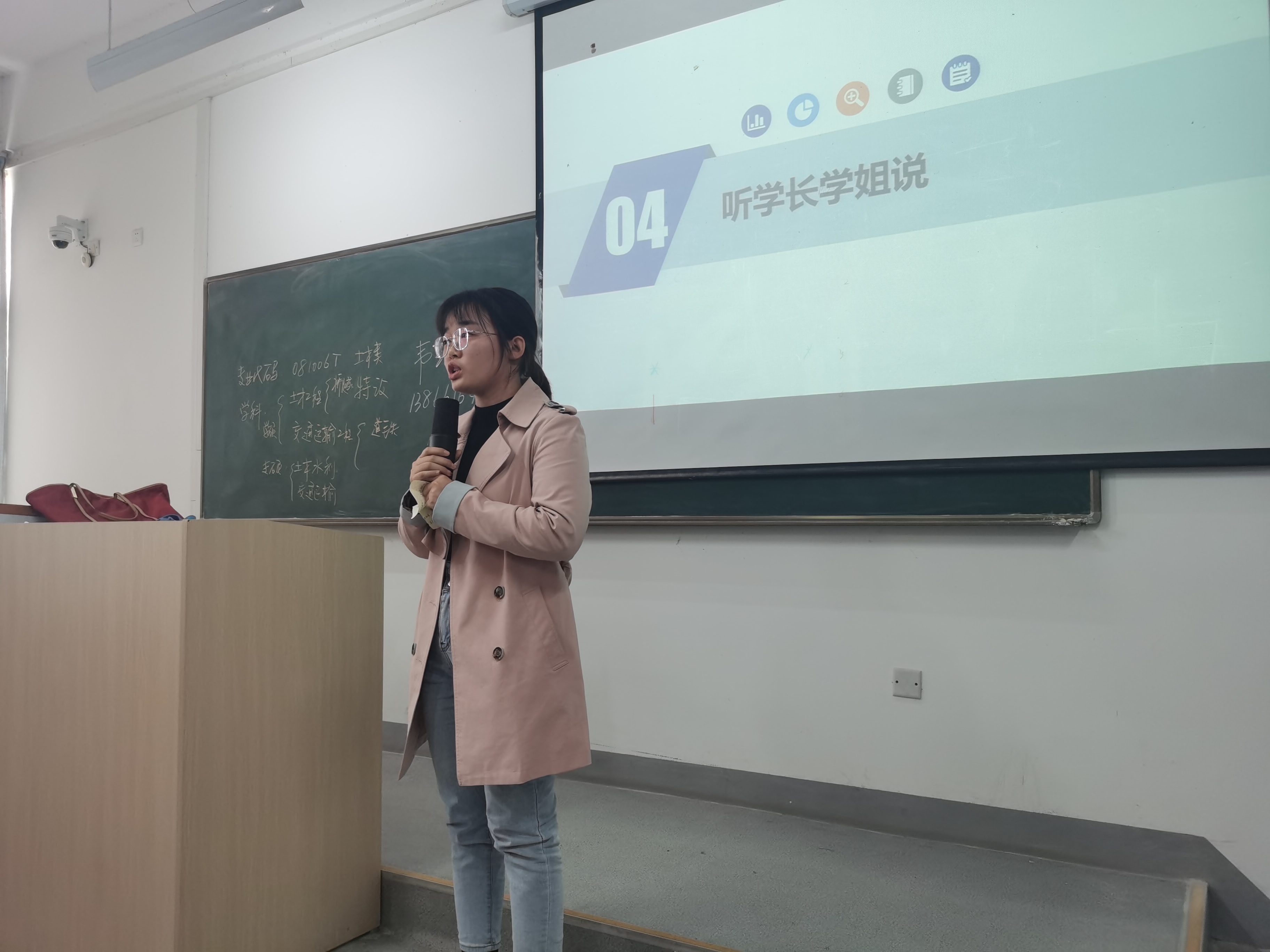 在第二个“听学长学姐说”的环节,本次活动邀请了18级道桥专业两位“国家奖学金”获得者程功勋学长和朱柳婷学姐,从学习、生活、人际关系等各个方面向同学们分享经验。