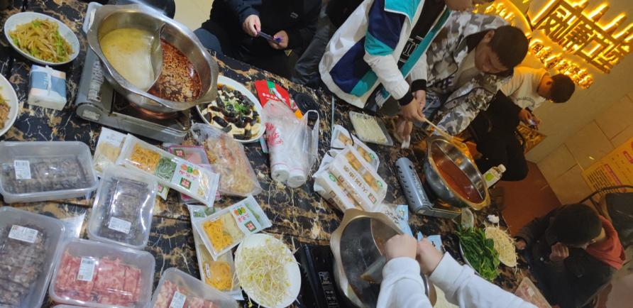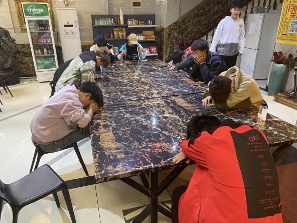 上午12:00,所有的同学们齐聚大厅,共同举杯,欢庆道桥第一次团建圆满成功。