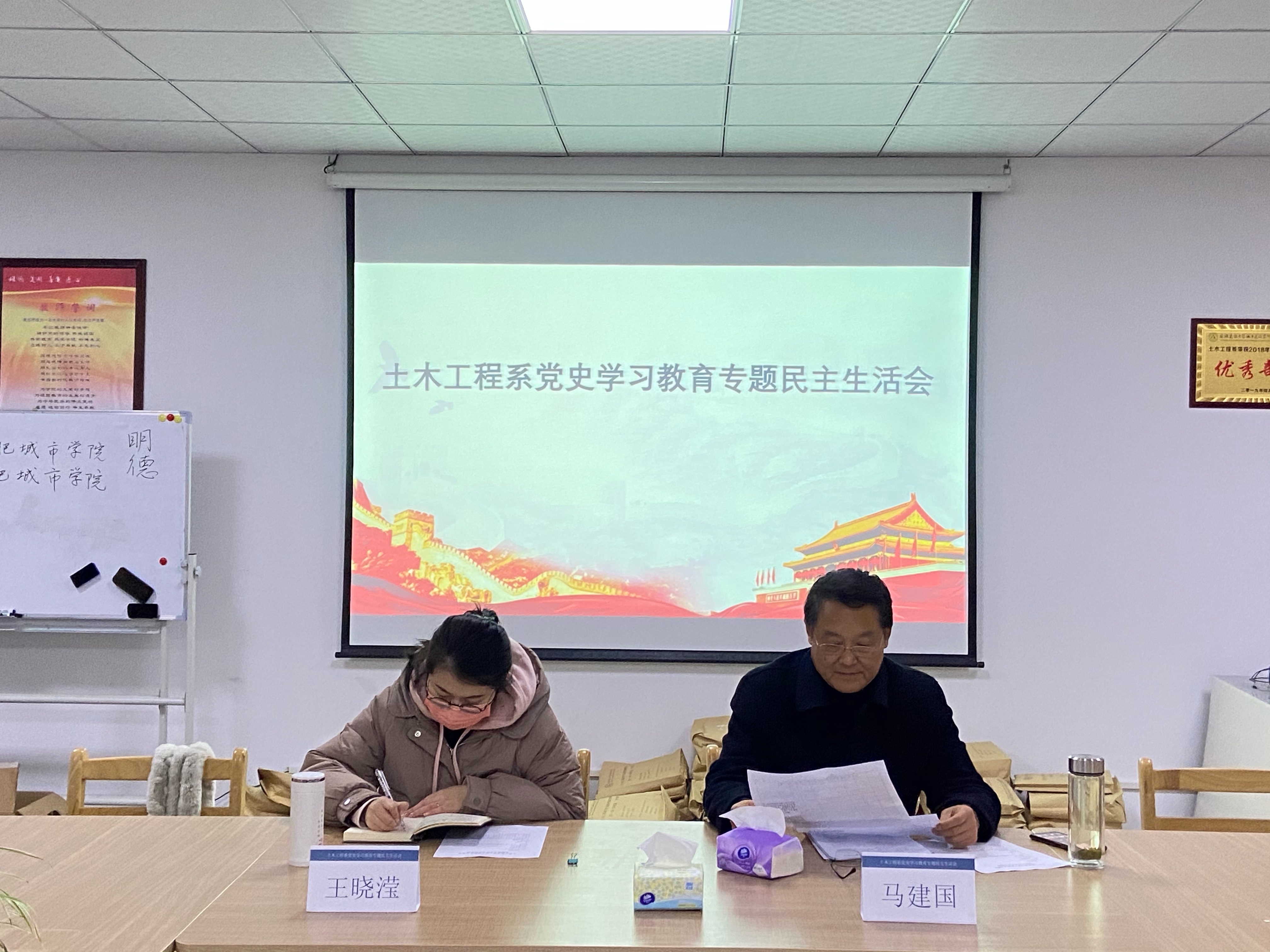 1月18日下午,土木工程系领导班子召开党史学习教育专题民主生活会,校党史学习教育专题民主生活会第二督导组组长、副校长马建国到会督导。会议以大力弘扬伟大建党精神,坚持和发展党的百年奋斗历史经验,坚定历史自信,践行时代使命,厚植为民情怀,勇于担当作为,团结带领人民群众走好新时代赶考之路为主题,按照“学史明理、学史增信、学史崇德、学史力行”和“学党史、悟思想、办实事、开新局”目标要求,围绕中央明确的五个重点方面进行对照检查,开展批评和自我批评。会议由党总支副书记范慧娟主持。
