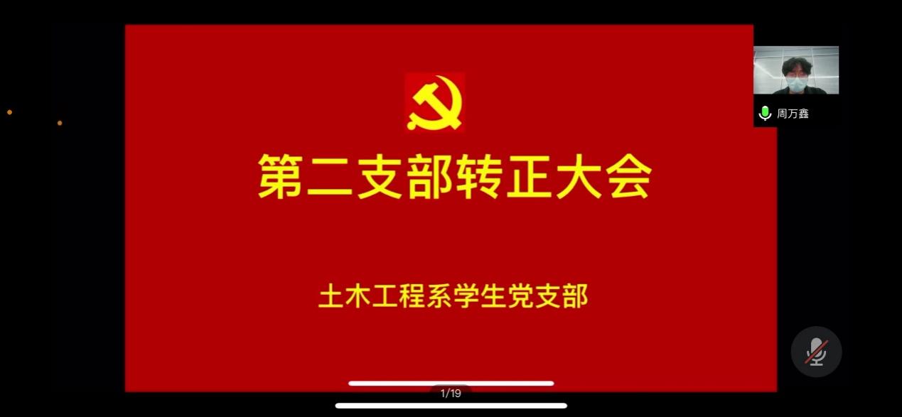 2022年3月31日下午14时30分,为深入贯彻党的理论方针,发扬党的十九届六中全会精神,积极扩充党员队伍,规范党员发展工作,土木工程系学生第二党支部于线上会议室召开转正大会。本次大会由支部书记吴晶晶主持,有表决权的到会人数超过应到人数的半数,符合会议规定。