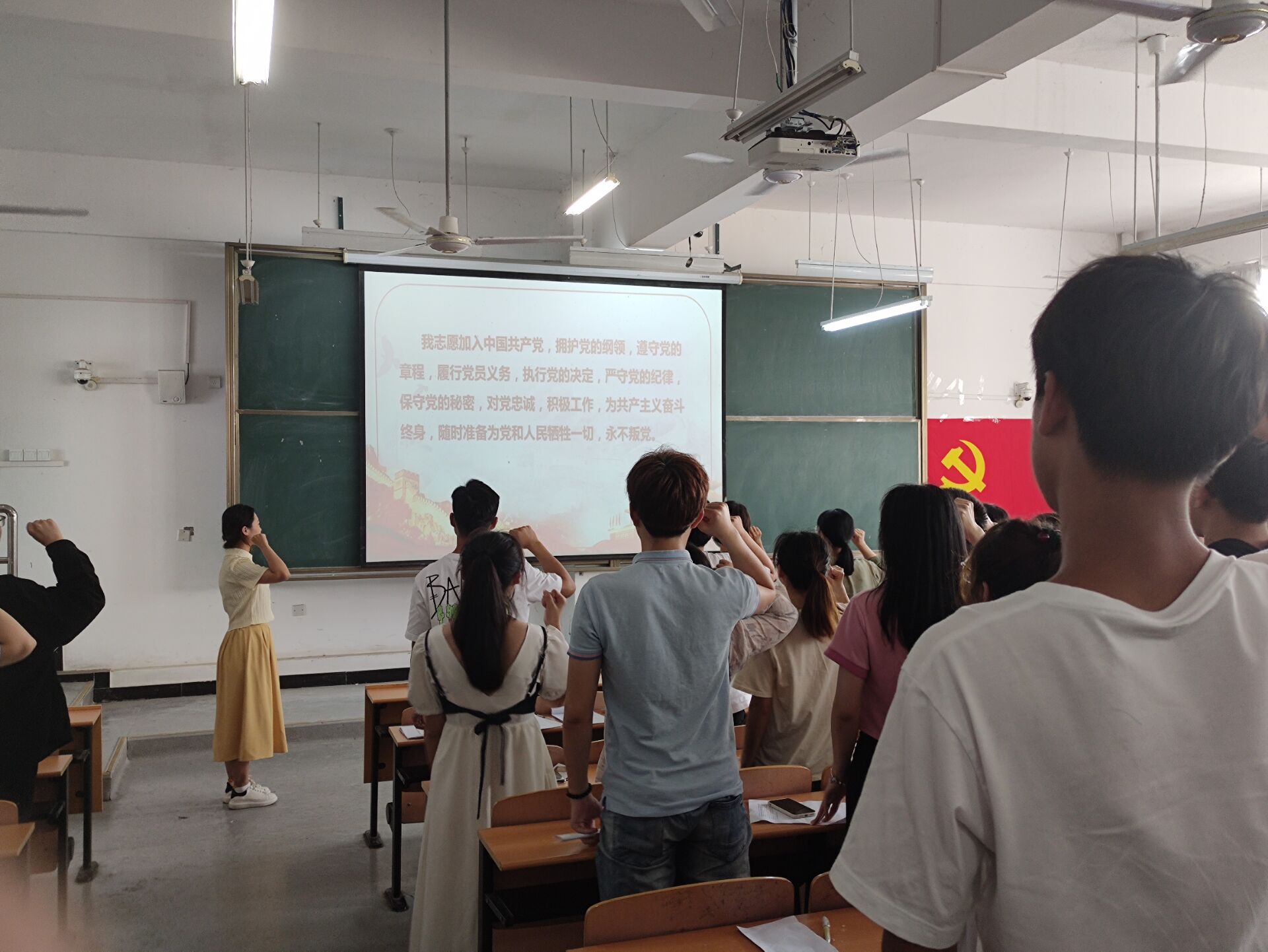 最后为增强新党员的党性观念、历史使命感和社会责任感。与会全体党员肃立,面对党旗进行庄严宣誓。