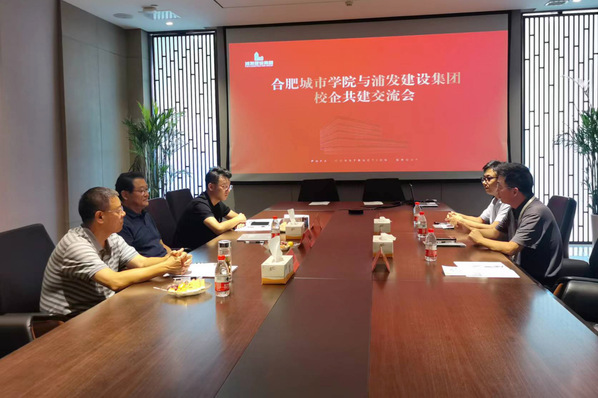 合肥浦发建设集团副总经理杜益波、集团党支部书记李广辉、人力资源部副经理崔艳玲等热情接待马建国一行,并组织召开校企合作专项交流研讨会。