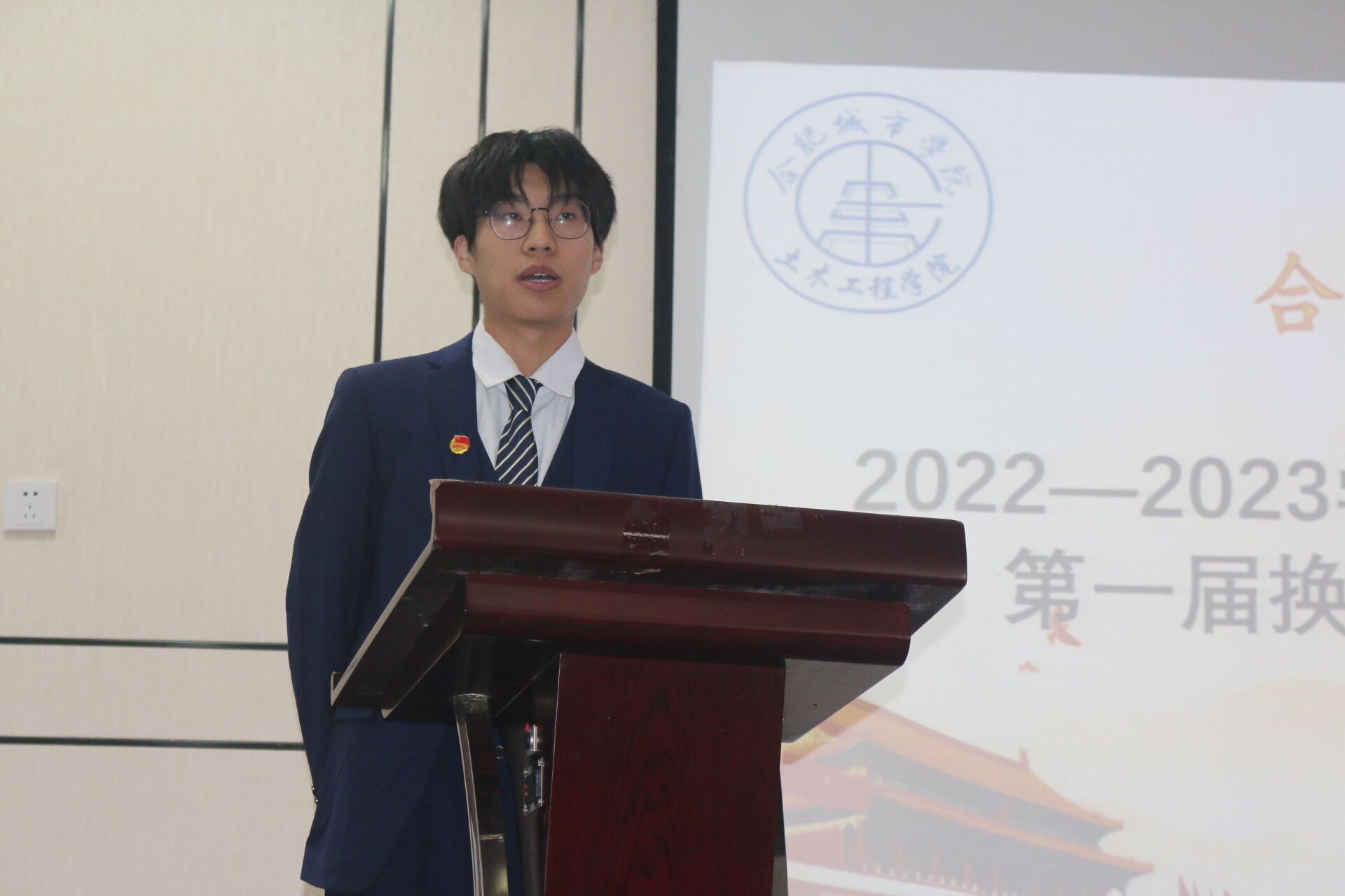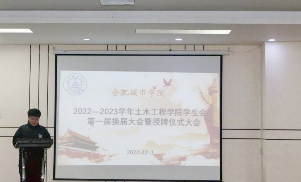 2022年12月1日,星空在线注册(中国)官方网站-注册登录土木工程学院学生会第一届换届大会暨授牌仪式在图书馆一楼小礼堂隆重举行。参加本次大会的有土木工程学院党总支副书记张敬知、土木工程学院辅导员李新义以及土木工程学院学生会执行主席王成成,主席黄古月、程益凡等,本次大会由土木工程学院团总支书记王锐主持。