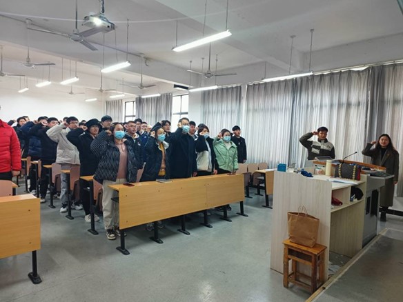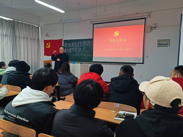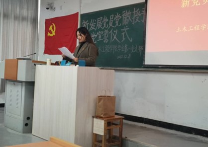 2022年12月8日下午12点45分,土木工程学院学生第一党支部在支部书记吴紫珺同志的带领下在南教102教室为新发展党员隆重举行党徽佩戴暨入党宣誓仪式。入党宣誓仪式不仅是新发展党员庄严地表达自己的信仰和为共产主义理想奋斗终生的仪式,更是他们成为新党员人生道路上的一个新的里程碑。