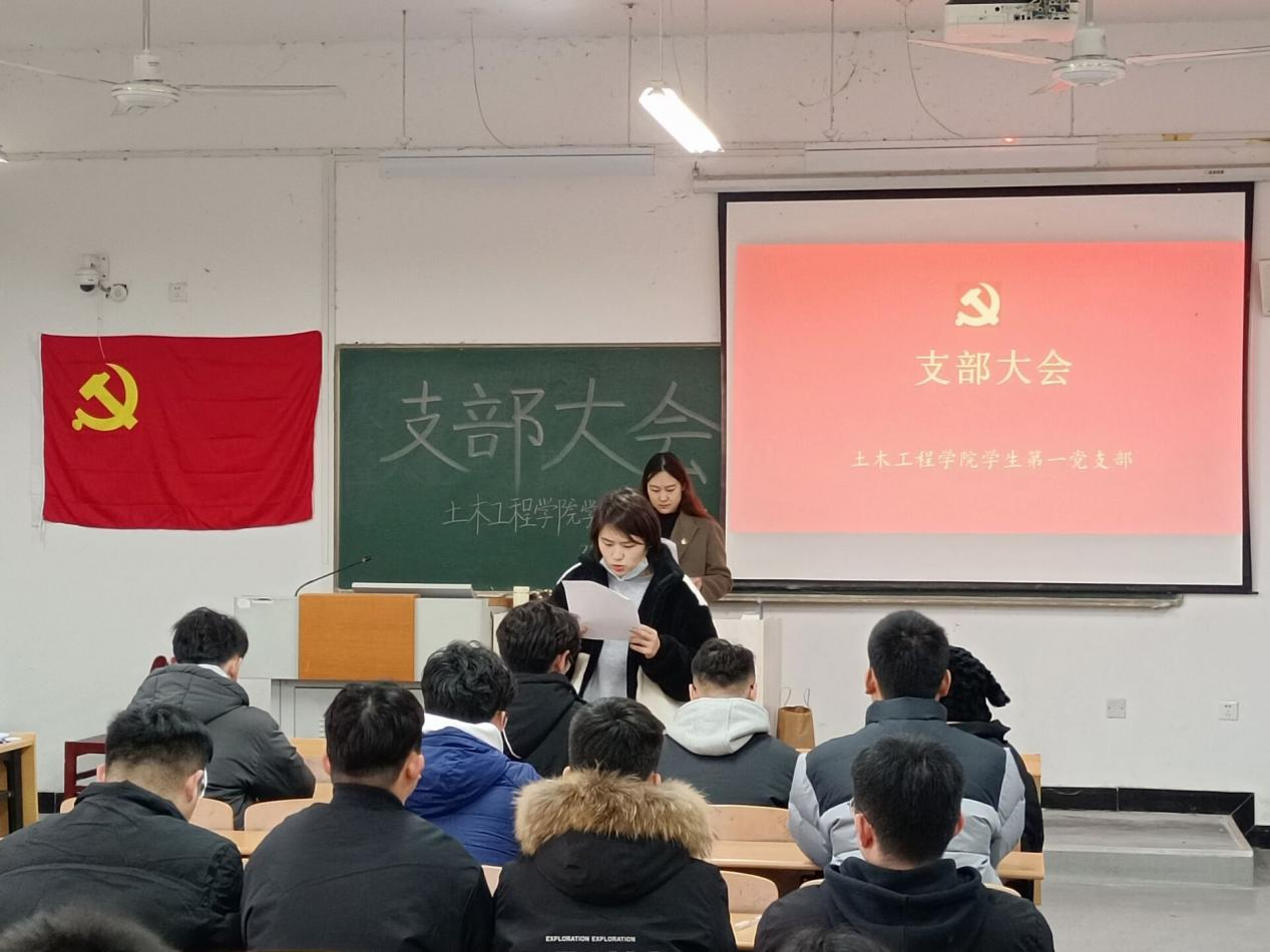 2022年12月3日下午,土木工程学院学生第一党支部在南教102教室召开支部大会,进行了预备党员转正会议。会议由支部书记吴紫珺同志主持。