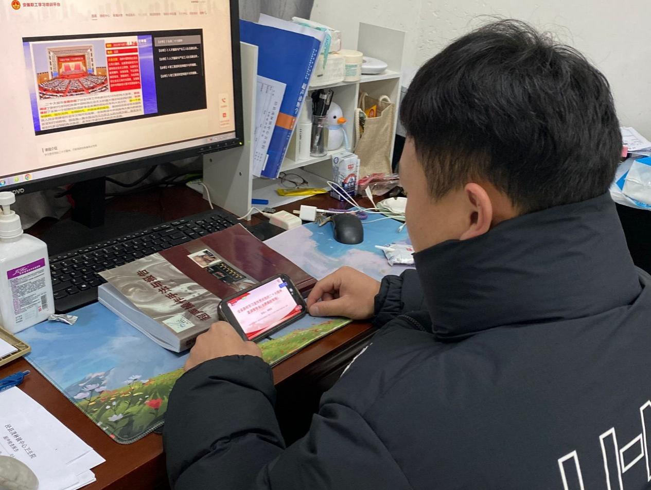 学习宣传贯彻党的二十大精神是当前和今后一个时期教育系统的首要政治任务。我省各高校通过线上和线下结合的形式开展了多场党的二十大宣讲、巡讲等相关活动,在广大师生中持续掀起了学习热潮。2023年1月4日下午2点30分,由安徽大学蔡敬民教授宣讲贯彻党的二十大精神报告会,我校土木工程学院学生第二党支部的全体师生党员们在家中准时收看直播宣讲,认真学习会议精神。