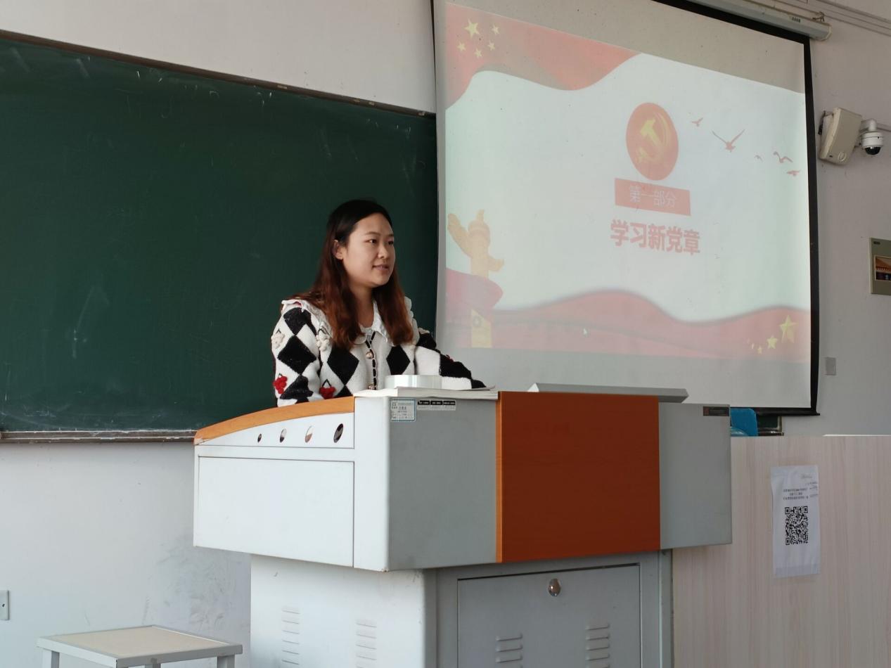 会议第一部分,由吴紫珺同志带领全体党员对新党章进行学习,通过学习,全体党员对新党章有了更加全面深刻的认识和体悟。