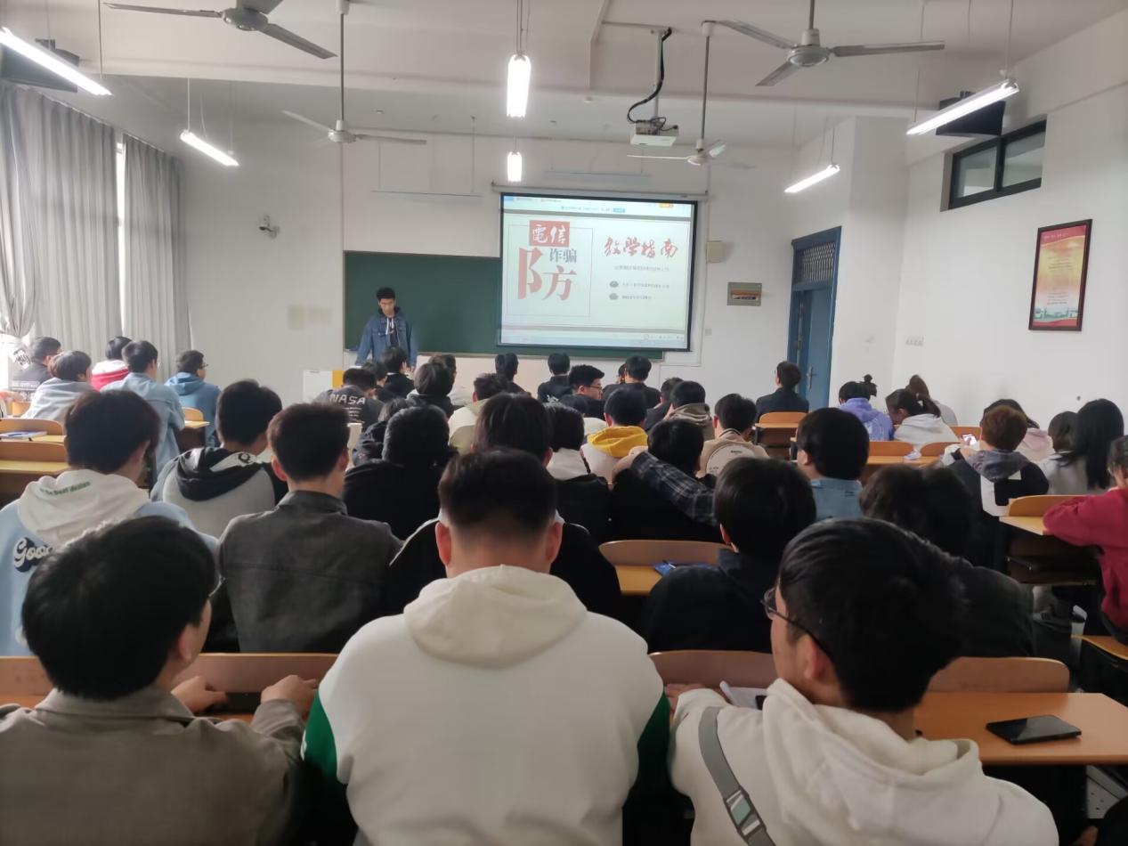 随着科技发展,新型电信诈骗的手段也层出不穷,为了提高21给排水专业同学对电信诈骗的防范意识,保护同学们的财产安全,杜绝此类问题的发生,21给排水专业开展了一系列防电信诈骗活动,为了让同学们更好的识别电信骗局的各种情景,专业全体同学于3月29日在南教学楼407教室开展了以“防电信诈骗”为主题的班会,本次活动由辅导员李新义指导,给排水专业班长主持。