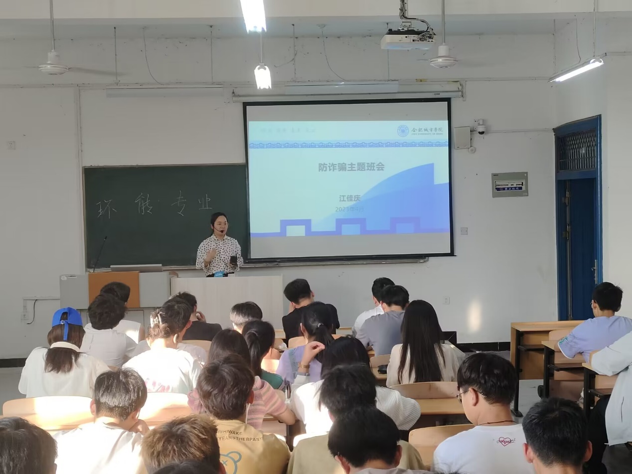 随着网络的迅速普及和科技的快速发展,层出不穷的电信网络诈骗手段让人防不胜防。为了提高同学们对电信诈骗的防范意识,保护同学们的财产安全,杜绝此类问题的发生,针对这项问题,4月25日下午17点,22级辅导员江佳庆老师为各班开展了“防范电信网络诈骗”主题班会。