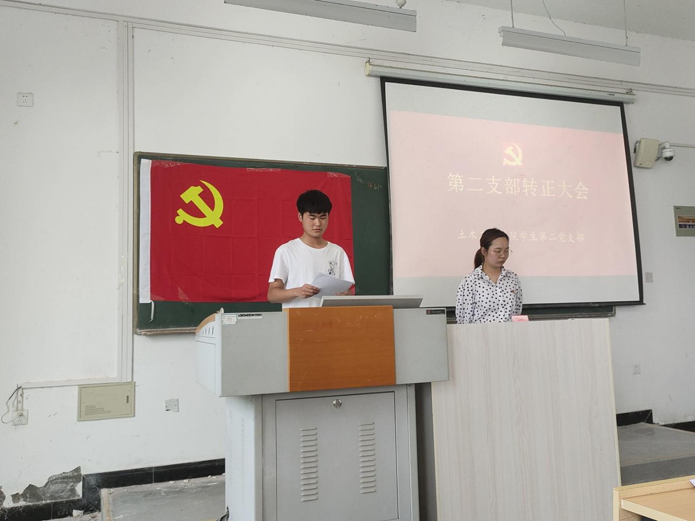 2023年5月26日,土木工程学院学生第二党支部在南教106教室举办了预备党员转正大会。此次大会中汪茹等6位同志向党组织提出转正申请,并顺利从中共预备党员转为正式党员。会议由学生第二党支部书记江佳庆同志主持。