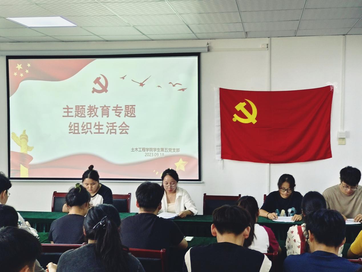 为深入学习贯彻习近平新时代中国特色社会主义思想,学习习近平总书记关于以学铸魂、以学增智、以学正风、以学促干等重要论述,进一步统一思想、深化认识,土木工程学院学生第五党支部于9月18日中午,在实验楼北202会议室召开主题教育专题组织生活会。本次会议由吴晶晶书记主持召开,全体在校党员参与。