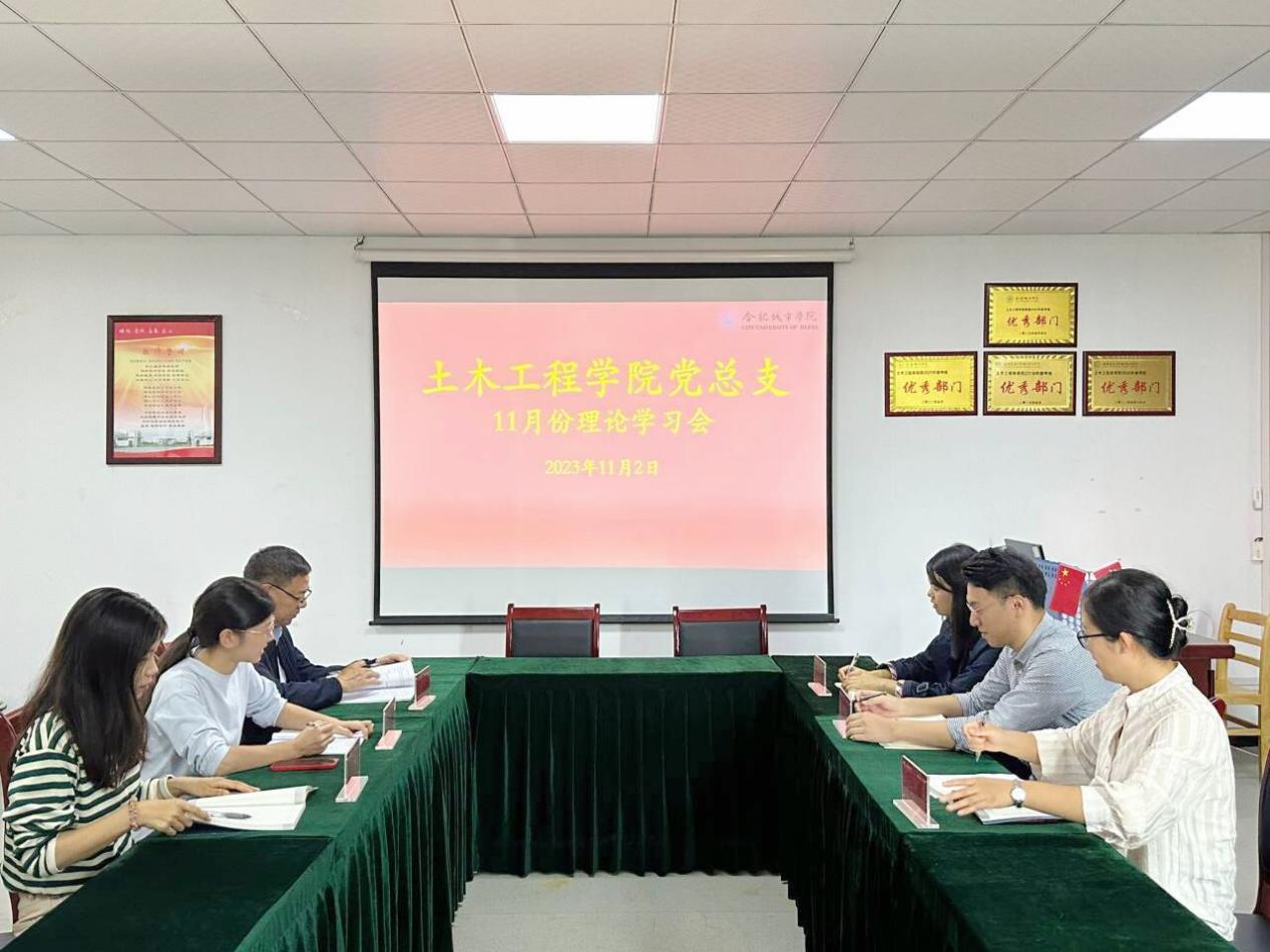 11月2日,土木工程学院在实验楼北302会议室召开党总支理论学习中心组学习会,土木学院院长雷庆关、党总支全体成员参加学习,会议由党总支副书记张敬知主持。