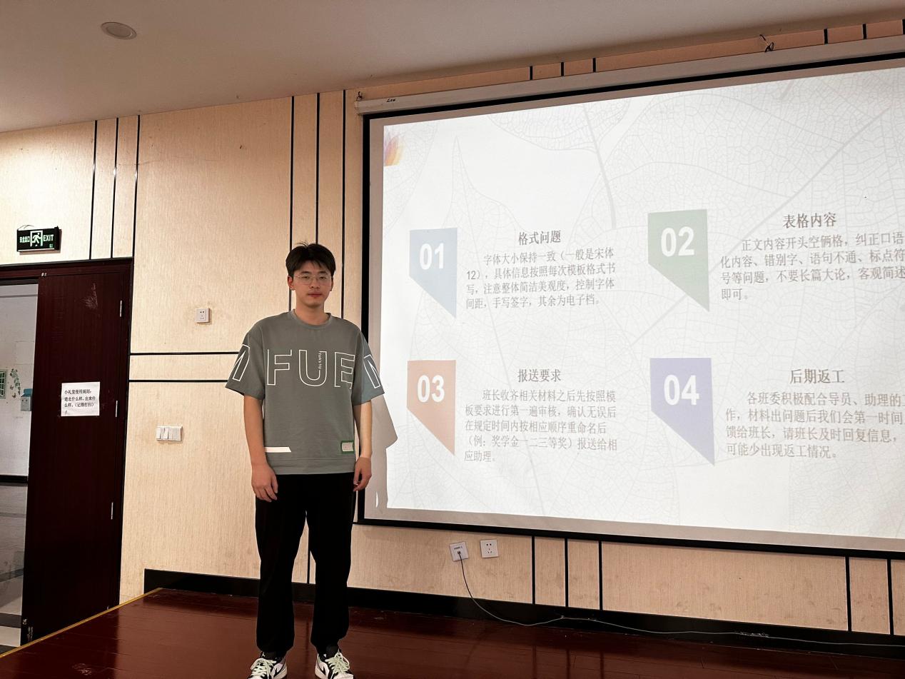 班委在班级管理工作中发挥着重要作用,是老师和同学之间的桥梁,是学生活动的带头人。此次会议中谢正超学长从“材料报送”、“综测绩点”、“Excel”、“在线文档”和“群报数收集”这五方面进行了论述。此外,两位学长还向新生班委展示了如何操作办公软件,简单介绍了一些办公技巧。谢正超学长指出,作为一名学生干部,更要努力提高自身的组织协调能力,培养动之以情、晓之以理、以理服人的游说能力;多动脑筋、多创新,提高自身解决问题的能力;学习和掌握科学的工作方法,不断加强自身修养。