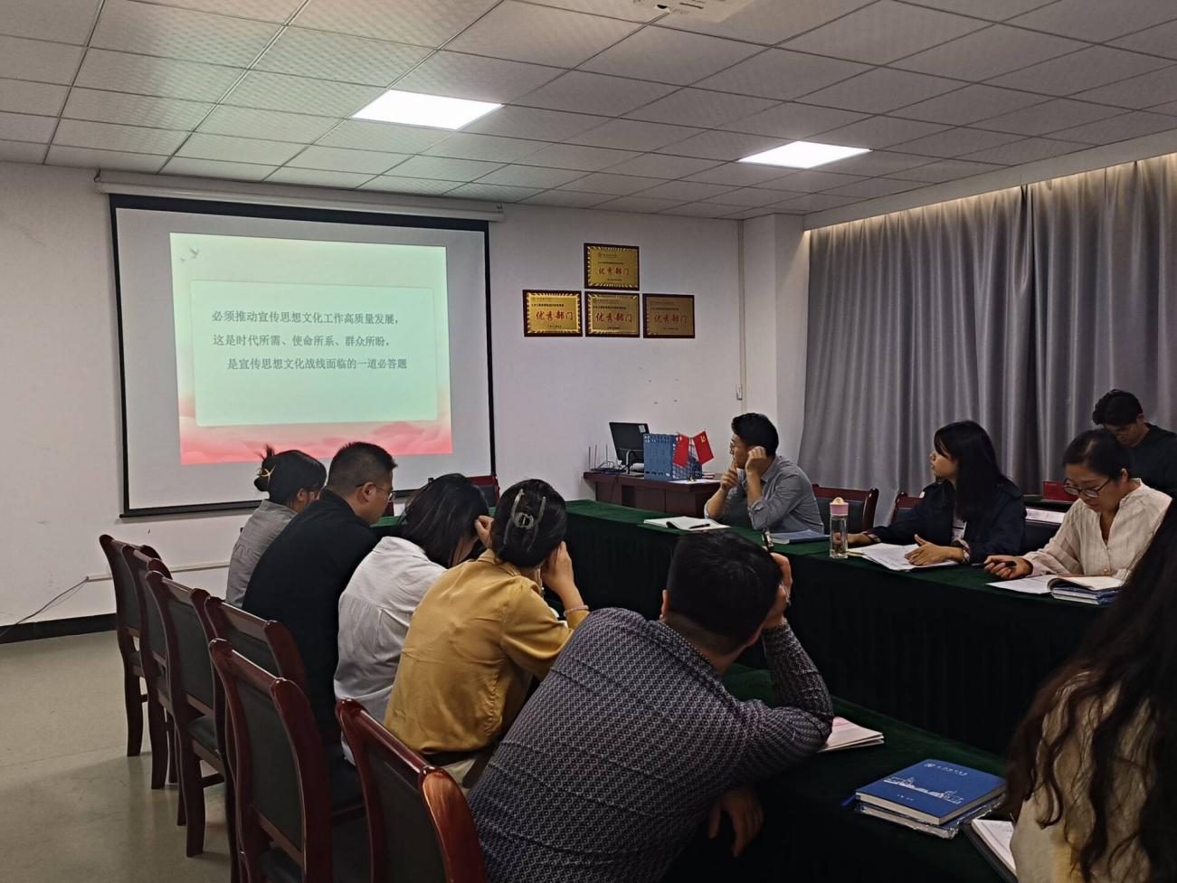 会议提出,到场的各位党员教师要坚定文化自信,做好新时代新征程宣传思想文化工作、担负起新的文化使命。并要深入理解“两个结合”是马克思主义基本原理与中国具体实际相结合、同中华优秀传统文化相结合。领悟“第二个结合”的重大论断,让我们能够在更广阔的文化空间中,充分运用中华优秀传统文化的宝贵资源,探索面向未来的理论和制度创新。从多个方面去分析推动宣传思想文化工作高质量发展,这是时代所需、使命所系、群众所盼,是宣传思想文化战线面临的一道必答题。