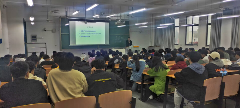在讲座过程中,雷本喜老师作为主持人,积极引导同学们提问和互动。同学们就大气污染对健康的影响、城市空气质量的改善措施等问题进行了深入探讨。李继副总经理也耐心回答了同学们的提问,并分享了自己的经验和看法。
