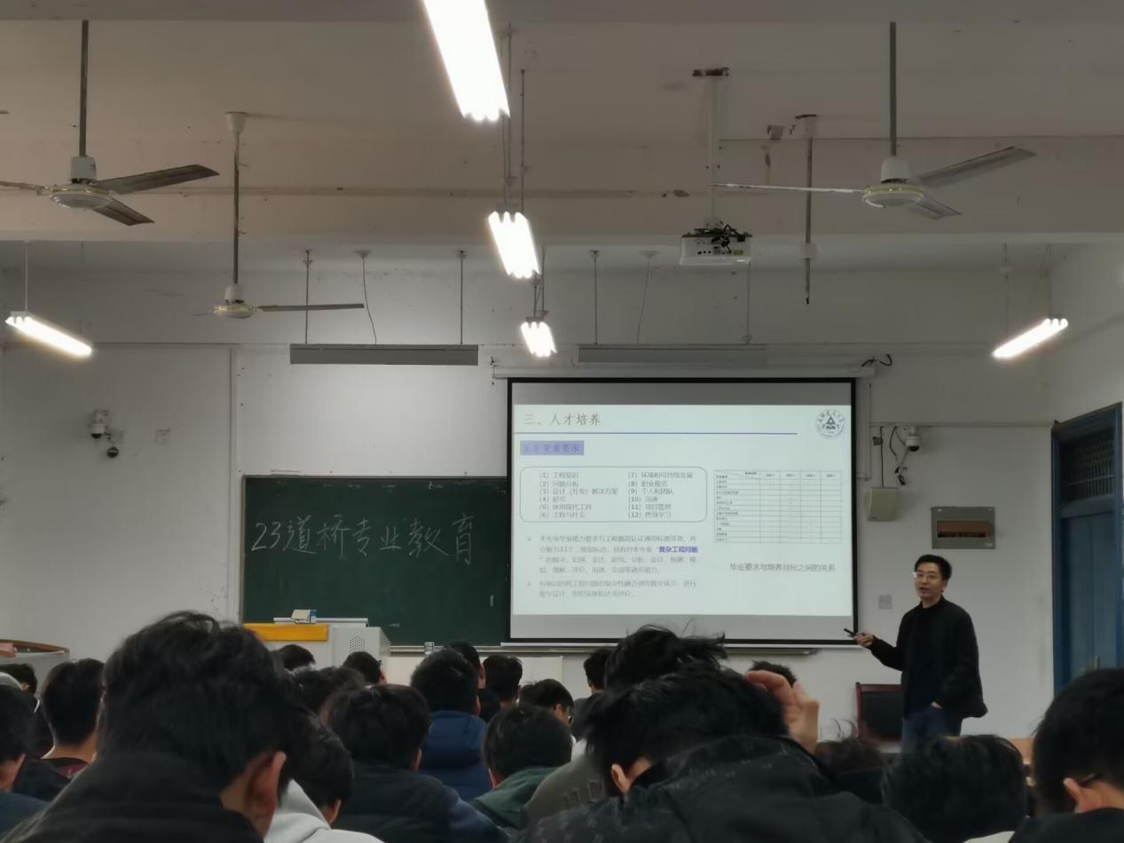 为使2023级道路桥梁与渡河工程专业新生更好地了解所学专业,土木工程学院土木与道桥教研室于11月23日下午15:00在南教101组织了2023级道路桥梁与渡河工程专业教育讲座,讲座邀请了道桥专业带头人赵青教授担任主讲。活动由土木与道桥教研室朱柳婷老师主持,2023级道桥专业全体同学参加。