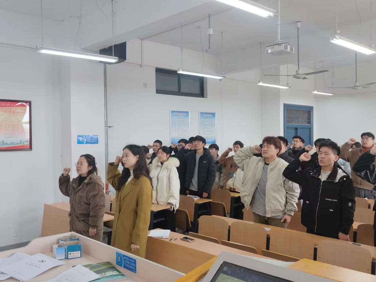 由支部到会的正式党员进行无记名投票表决。经过投票表决,四位发展对象的赞成票数均超过到场正式党员的半数,同意接收四位发展对象为中共预备党员。最后,由正式党员江佳庆同志带领四名新发展预备党员及全体参会党员面对党旗庄严宣誓。