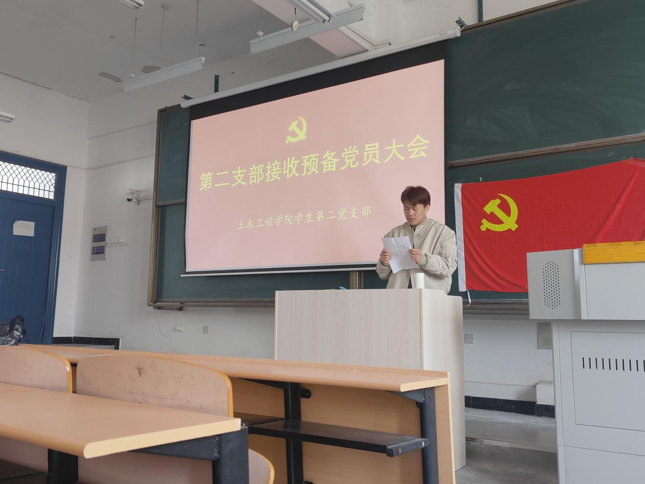 大会由土木工程学院学生第二党支部书记江佳庆主持,本次会议有表决权的到会人数超过应到人数的半数,符合规定人数。