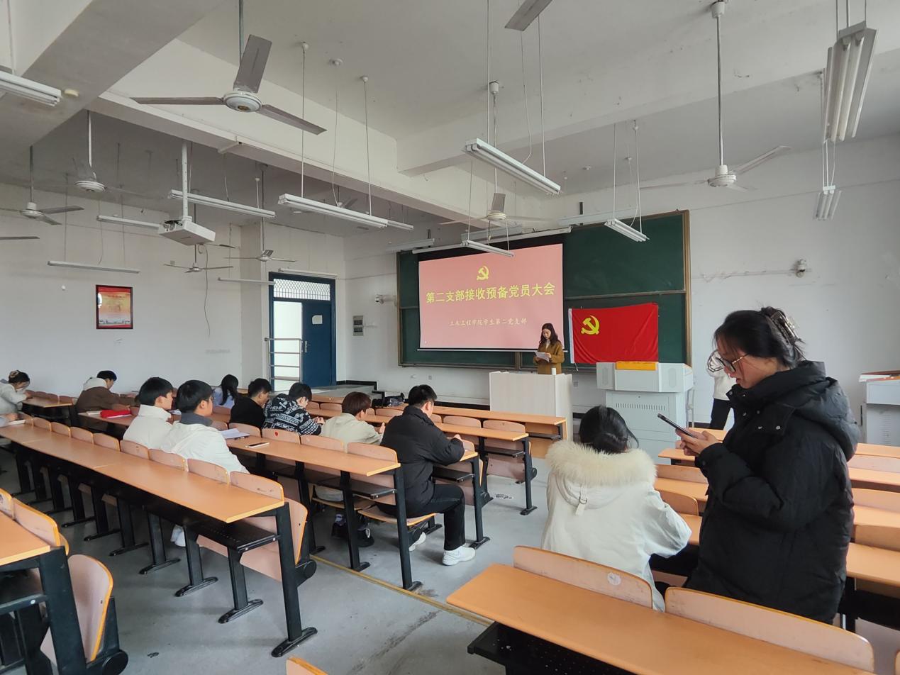 为进一步健全和完善支部组织建设,吸收新鲜血液,土木工程学院学生第二党支部于2023年11月21日中午12:30在南教学楼108召开了接收预备党员大会。此次大会主要讨论李小勇,王志刚,谢金鑫,钱民杰四位发展对象能否吸收为中共预备党员的相关问题。
