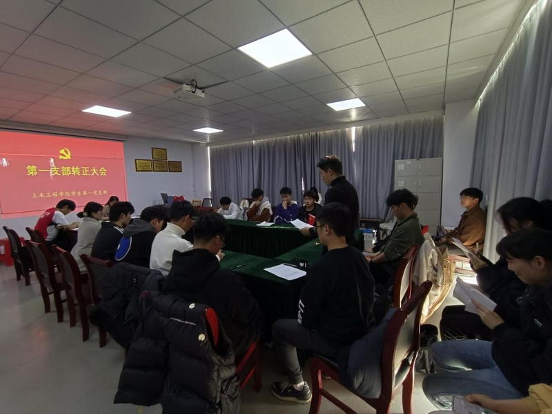 2023年11月24日,土木工程学院学生第一党支部在实验楼北302召开了预备党员转正支部大会。本次会议由崔延同志主持。