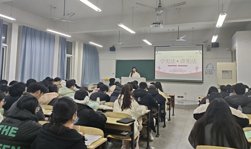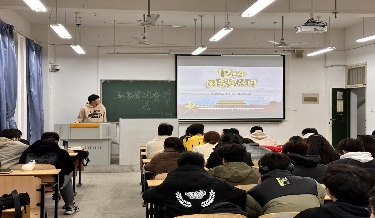 为深入学习宪法,培养法治思维,推动全体学生尊法、学法、守法、用法,在第十个国家宪法日到来之际,土木工程学院23级安工、环能、无机非专业于12月6日召开了以“学宪法,讲宪法”为主题的班会活动,旨在通过观看宪法相关视频、传唱宪法主题歌曲,学习宪法知识等方式,提高同学们的宪法意识和法治观念。本次主题班会由辅导员毛蕾老师主持,宣传委员助讲,各专业全体同学参加。