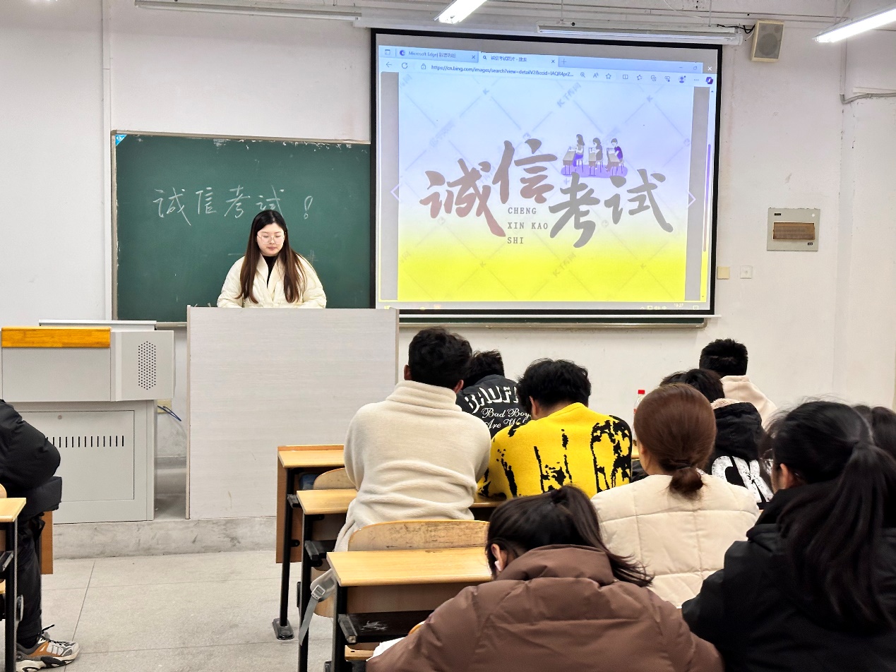 严肃考风考纪,严谨治学,诚信考试。为贯彻落实“立德树人”的根本任务,践行社会主义核心价值观,营造诚实守信的校园文化氛围,强化学生严肃考风考纪意识,维护考试公平公正,在期末考试月来临之际,2023级土木工程学院安工、环能、无机非专业组织开展了以“诚信考试”为主题的班会。此次会议由辅导员毛蕾老师主持,并邀请到土木工程学院邓文杰老师参加,全体同学参加。