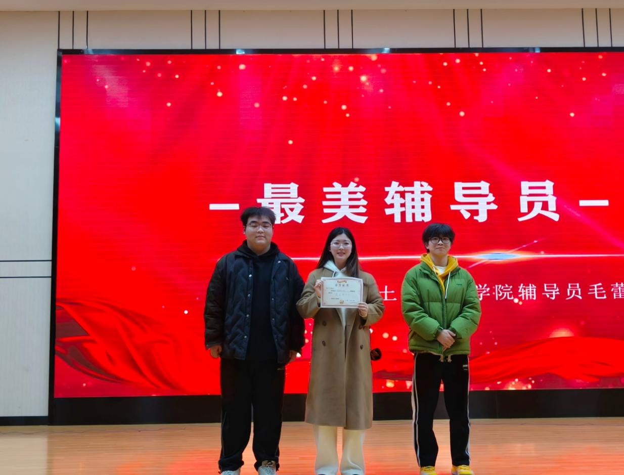 会议最后,由23无机非班长梁世涛、杨文博代表专业全体同学为辅导员毛蕾老师颁发了“最美辅导员”奖,在同学们心中,毛蕾老师不仅最美,更是最佳!