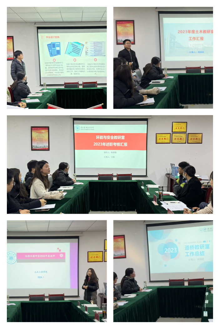 会上,按照抽签顺序,各教研室负责人依次对2023年度的教研室工作进行回顾和梳理,从师德师风建设、教师队伍建设、教育教学工作、教科研工作及取得的成果等方面进行了汇报,汇报内容丰富详实,充分体现了各教研室的建设特色。此外,各教研室负责人也对2023年度教研室工作中存在的不足进行总结,提出改进方案,并制定了下一年度的工作计划。