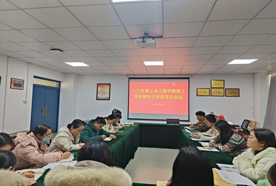 2024年1月9日下午12:40,土木工程学院教工党支部在实验楼北302会议室,召开了2023年度民主评议党员大会。本次会议由土木工程学院教工党支部书记王静同志主持,土木工程学院教工党支部党员教师参加会议。