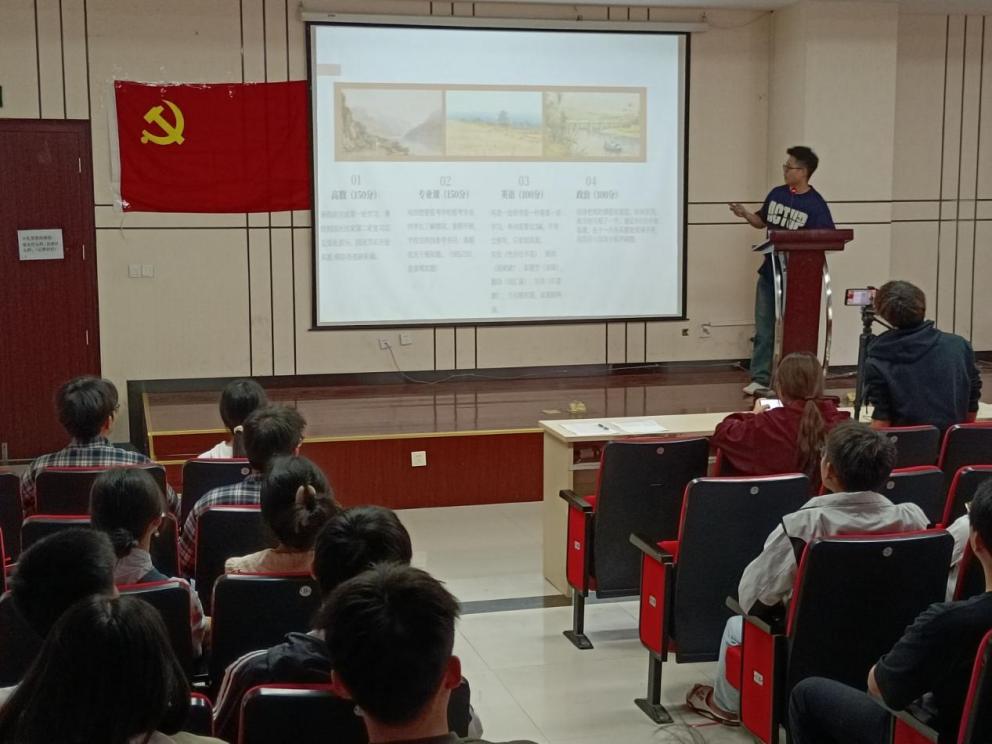 交流会开始,主持人简要介绍了活动的目的和流程,随后六位准研究生依次上台分享他们的考研经历。他们用自己的亲身经历,向在场的同学们展示了考研的艰辛与收获,也传递了坚持与努力的力量。