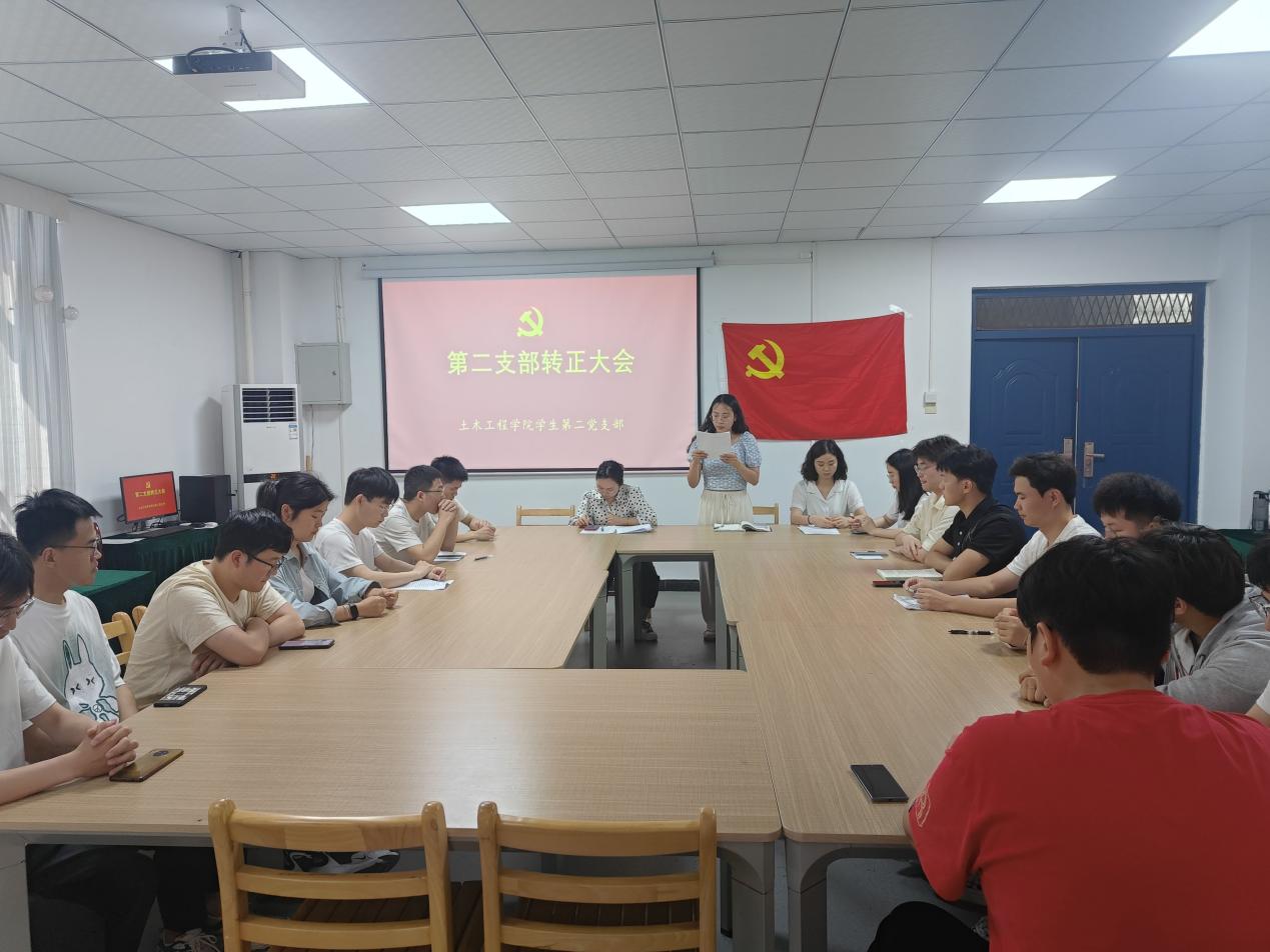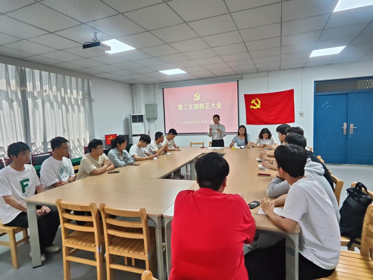 2024年5月26日,土木工程学院学生第二党支部在实验楼北202召开支部大会,会议由支部书记江佳庆同志主持。此次大会主要讨论瞿博宇、纪勇、李浩然、江辉、舒承源、谢正超六位同志的转正问题。