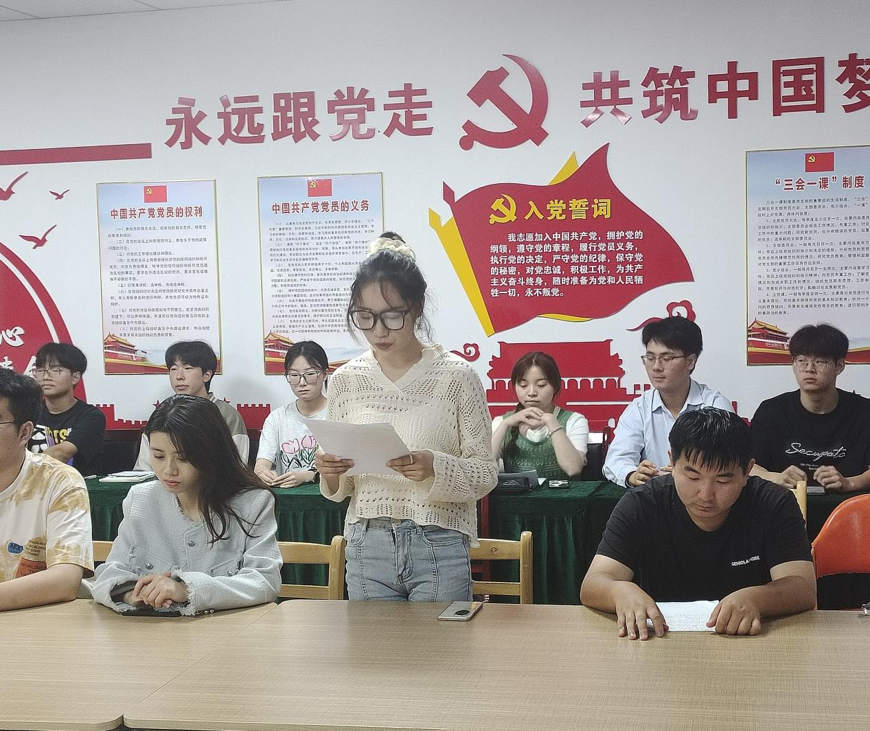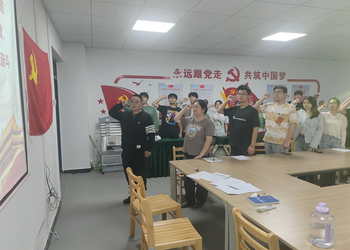 接着周雨同志带领全体成员进行宣誓,学生党员们面向党旗,眼神中充满着坚定与自豪,他们深知肩头责任更重,誓言将以更高标准要求自己,为党的事业奋斗终生。