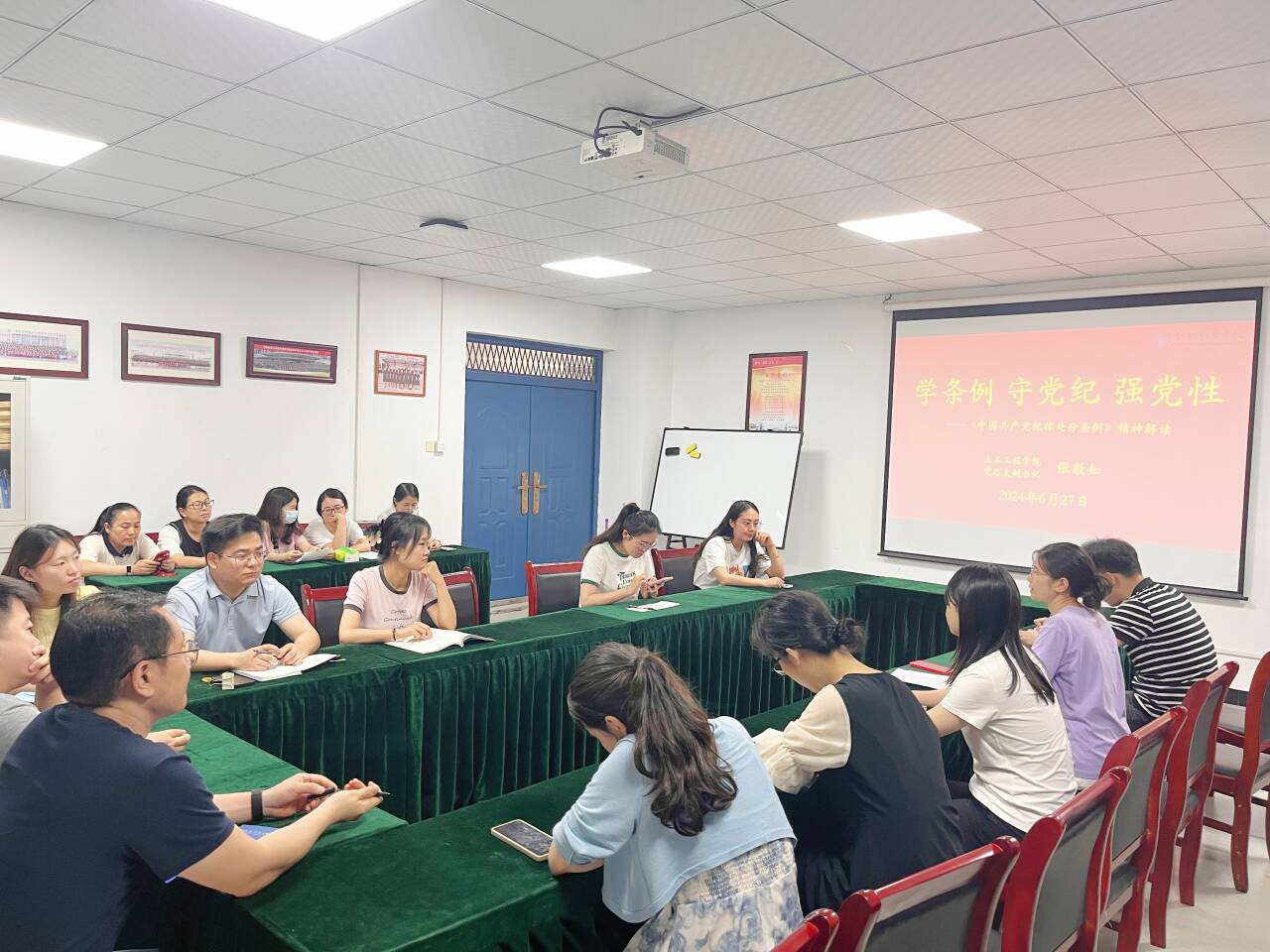 6月27日下午,土木工程学院党总支副书记张敬知以《学条例 守党纪 强党性》为题,深入领学解读新修订的《中国共产党纪律处分条例》精神。土木工程学院全体党员参加。
