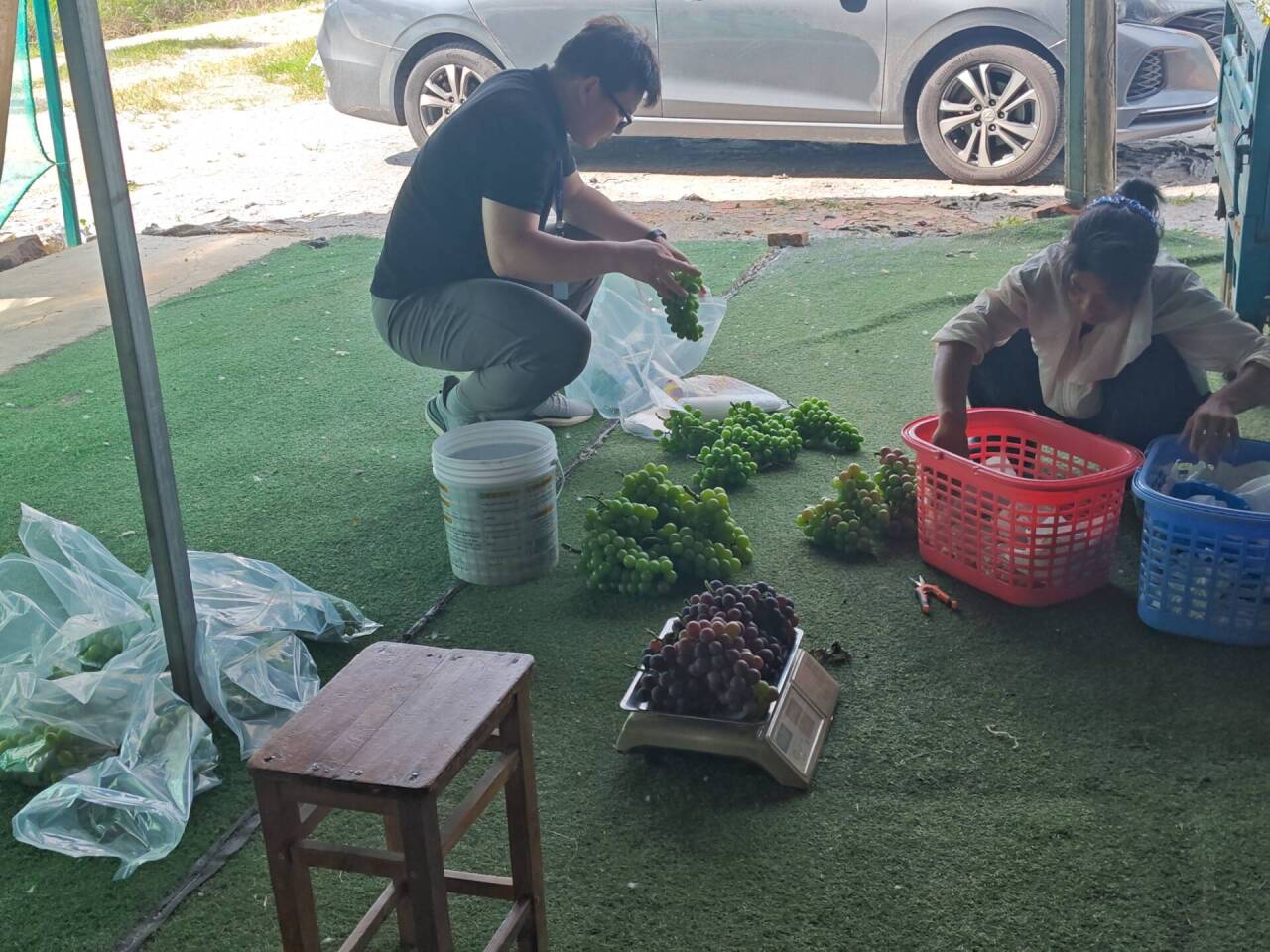 在葡萄采摘环节,实践团的实践团志愿者们顶着酷暑,戴上手套,穿梭在葡萄架下,用剪刀小心翼翼地采摘成熟的葡萄。在采摘过程中,他们不仅体验到了劳动的艰辛,也感受到了丰收的喜悦。采摘完毕后,实践团志愿者们协助果农对葡萄进行分级、包装,并通过线上线下渠道进行销售。